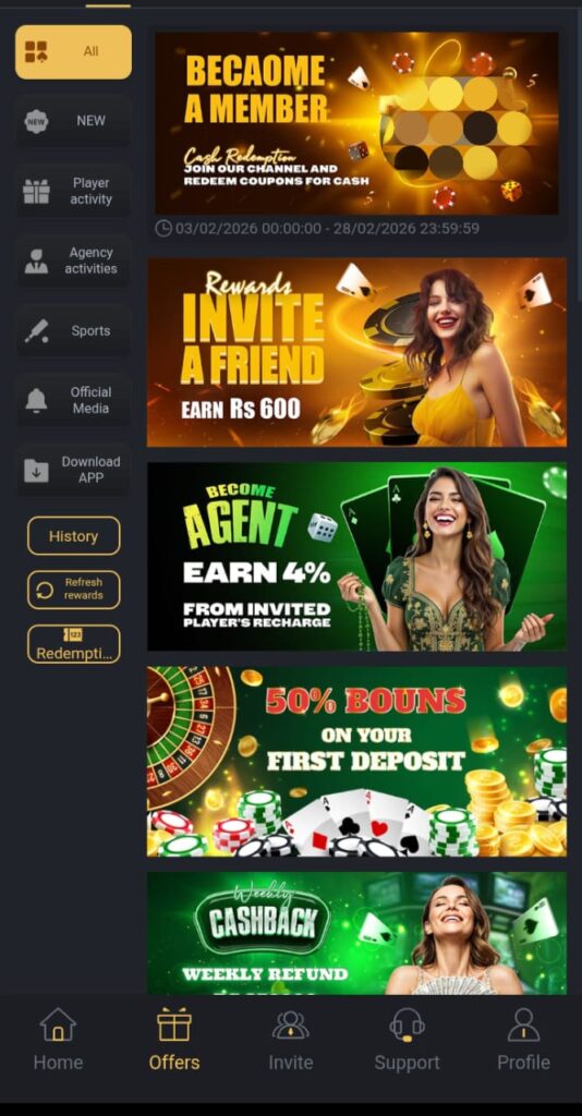 The app offers regular bonuses and referral benefits. I noticed bonus credits sometimes arrive instantly after login or first deposit.