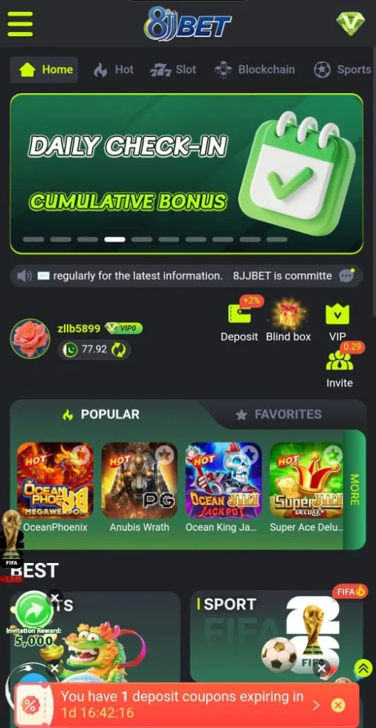 The 8JJBet App gives daily login rewards. Even if you play for a short time, you can still earn bonuses.