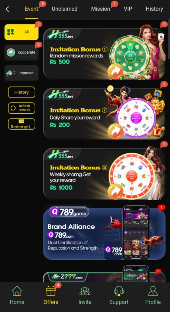 VIP Rewards The H555 VIP scheme awards special privileges to the most devoted players. The higher the VIP status, the more attractive the bonuses. Referral Bonus People who introduce their friends to H555 online game APK will get referral bonuses if their friends sign up.